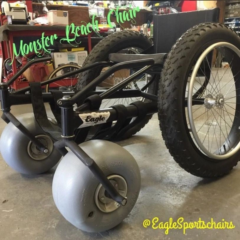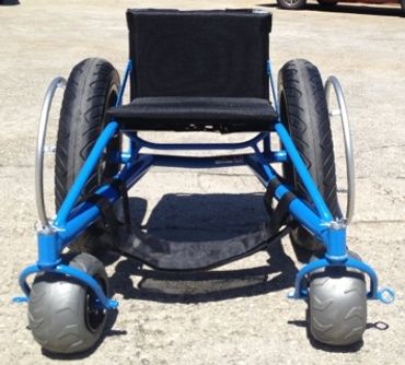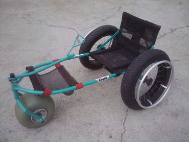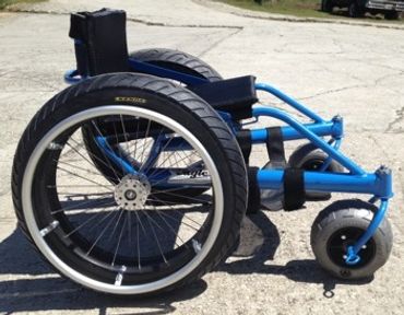 This three or four wheeled chair features an extra large front wheel(s) and 20" oversized rear wheels. A must have if you love the beach. Water resistant fabric and all durable materials means you can play all day and just hose it off before storing!