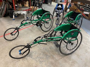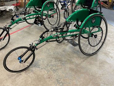 WINGS comes in 1 of 4 colors: red, blue, green, or black. Includes kneeling pan along with an adjustable footrest. It comes with an 18” front tubular wheel and 26” or 700c tubular rear wheels with hose-coated handrims.