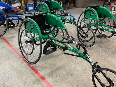 The Wings racing chair was developed as an adjustable and reasonably priced option for teams and recreational programs. This chair sits and moves like our Soaring Eagle so advancing athletes will have a smooth transition. The adjustable foot rest and removable kneeling pan allows the coach to work with athletes to find their optimal seating position for pushing.